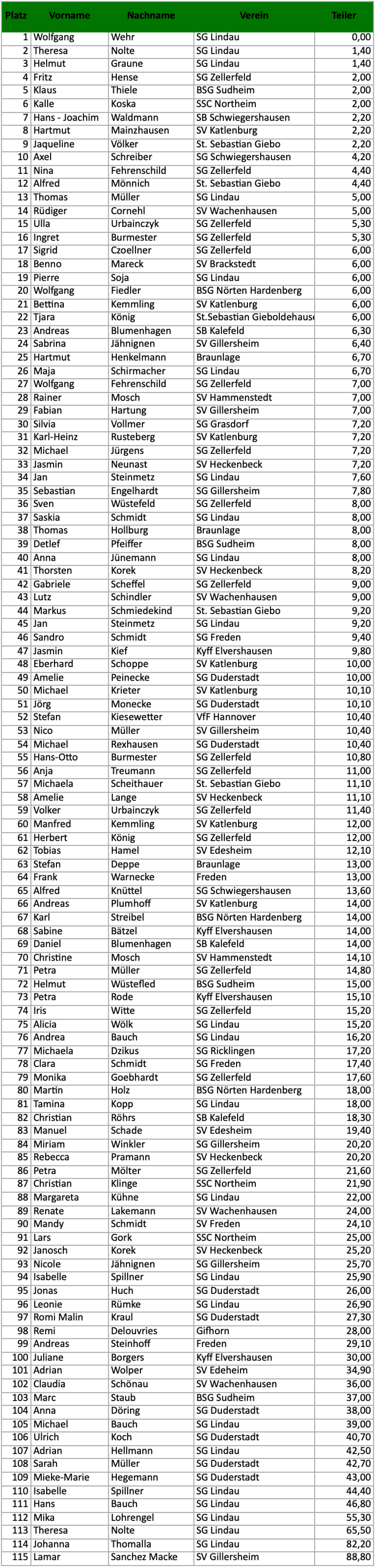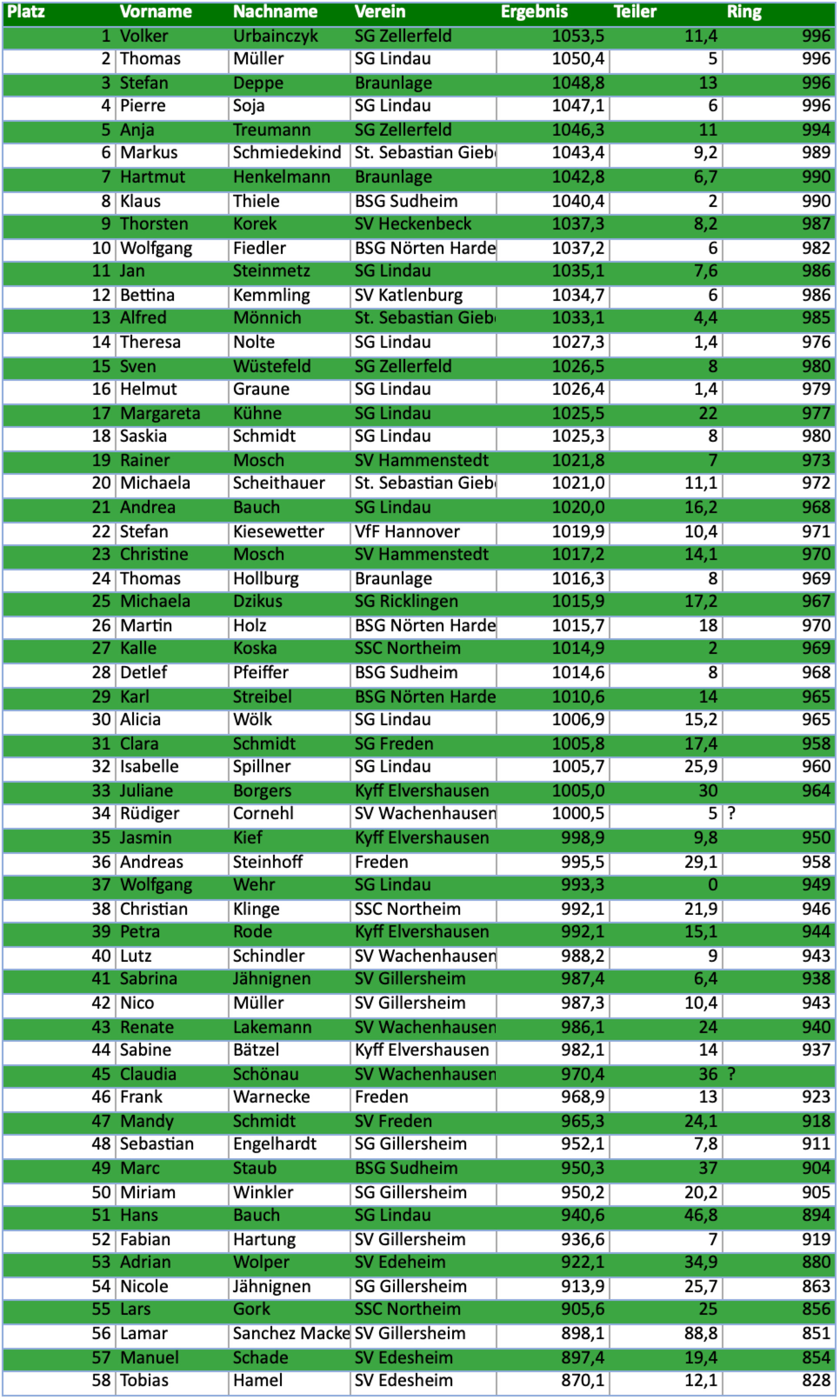 Ergebnisse Marathonschießen 2025